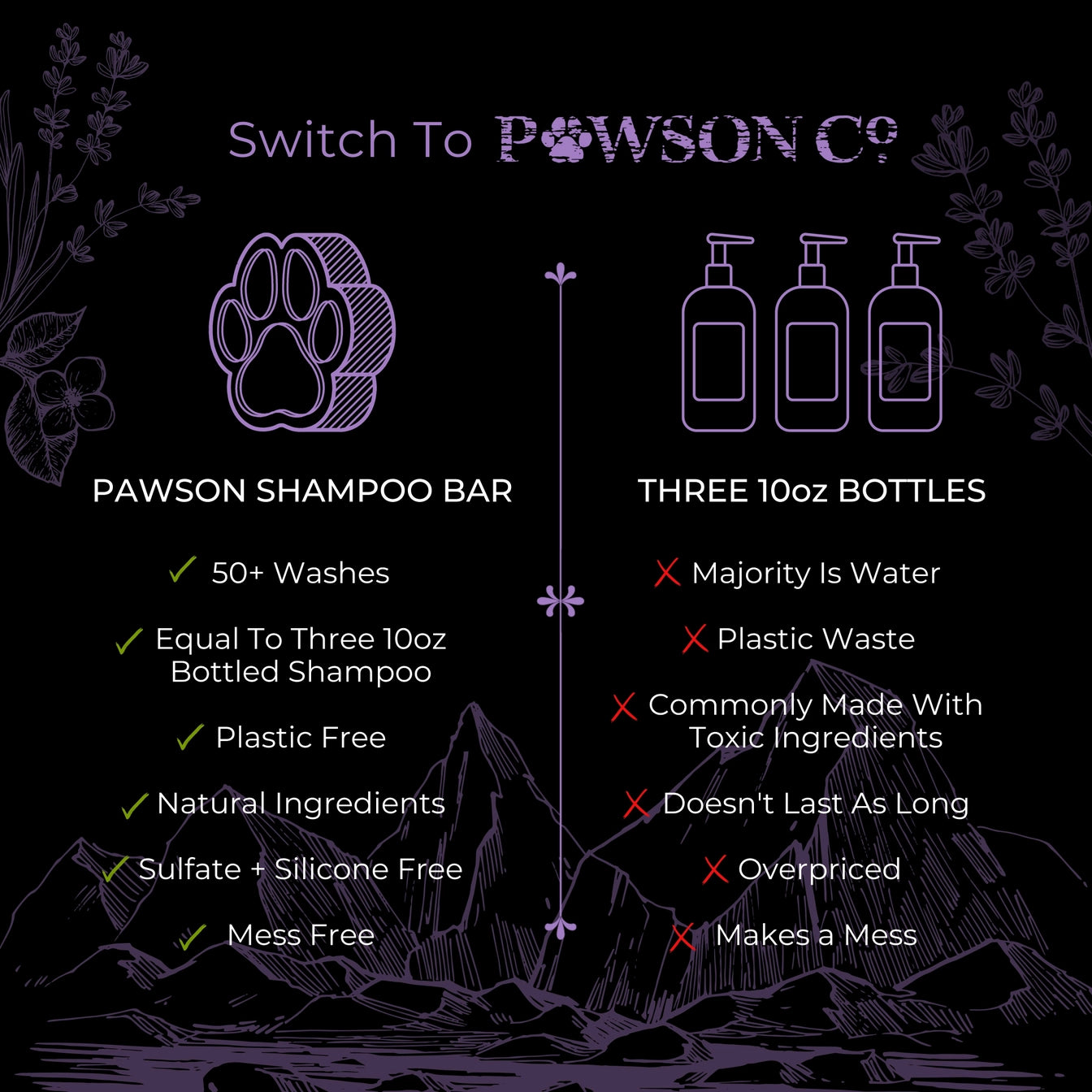 Naturally created for your pet's fur and designed for scents every member of the family will love. Perfect for your dog, cat, or any furry pet! We even have customers use these bars on their horses!